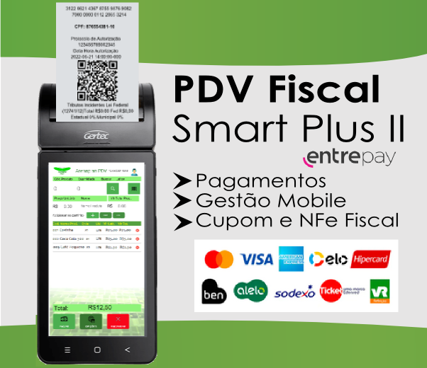 Se utilizar o modelo SMART Plus você vai operar com CHIP gratuito para meios de pagamento e impressão fiscal. O modelo Smart Plus II vem com CHIP gratuito para receber pagamentos mas precisa ter um WIFI conectado para emissão fiscal.