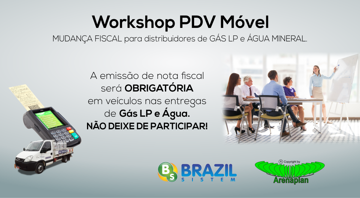 A legislação fiscal para distribuição de gás e água está mudando em todo o Brasil. Isso significa que a emissão da nota fiscal em veículos de distribuição destes setores passará a ser obrigatória em todos os estados Brasileiros. A parceria entre a Brazil Sistem e a Arenaplan traz para o mercado uma solução completa que possibilita aos veículos (caminhões, automóveis, motos e até bicicletas) a emissão da nota fiscal em máquina de cartão integrado com sistema de teleatendimento, gestão das vendas em nuvem, sped fiscal, empréstimo de vasilhames e etc.O evento promovido pela Arenaplan Consultoria de São Paulo, a Brazil Sistem de Santa Catarina e a Partner Assessoria de Caxias do Sul é um workshop sobre o PDV Móvel e apresentará as inovações que envolvem a máquina de cartão que emite nota fiscal integrada com uma série de recursos tecnológicos. Novos workshops estão previstos este ano para os estados do Rio de Janeiro e Rio Grande do Norte. No evento serão mostrados: